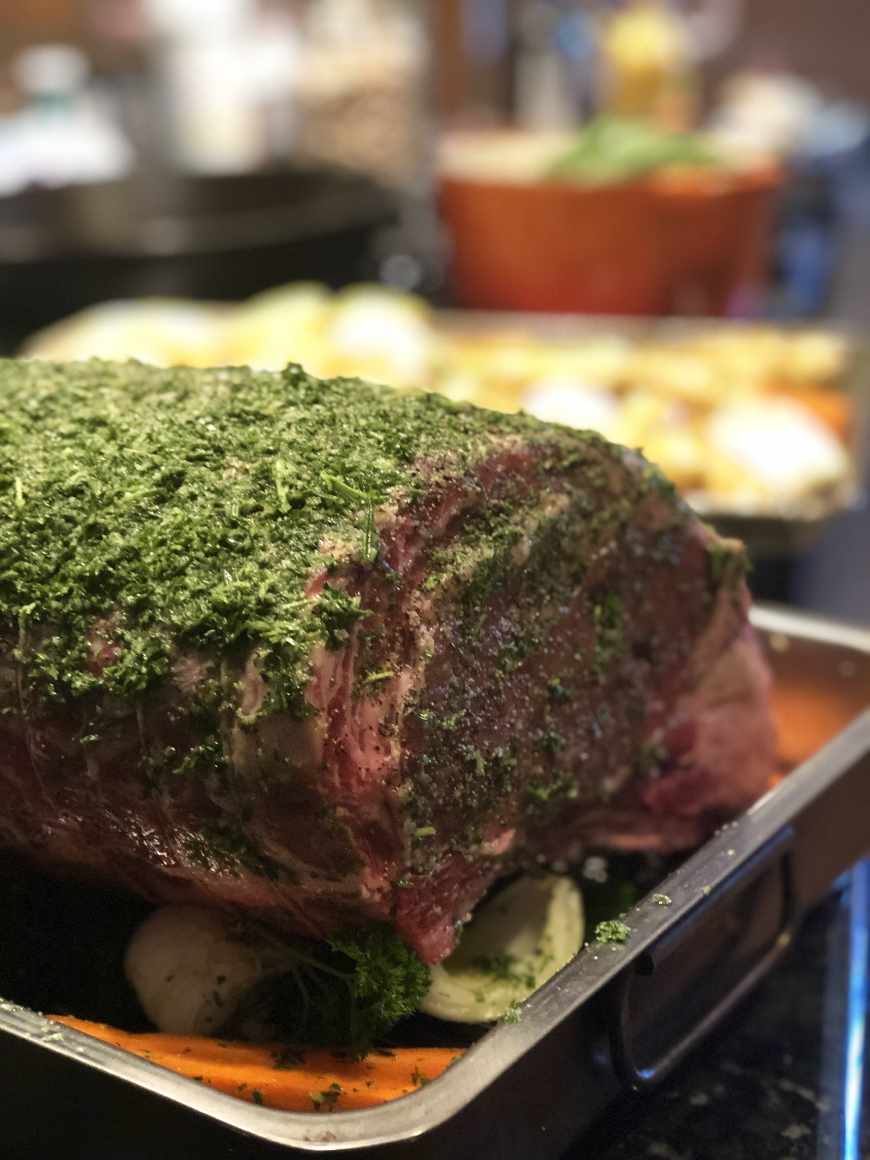 8 ribs – prime rib of beef. Center cut, chine bone removed. (make sure to give your butcher a friendly reminder to remove the chine bone)